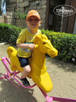 4-Территория отеля. Территория небольшая, однако для всего хватило места. И для теннисных кортов, и для футбольного поля и для двух площадок волейбола. Отдельного внимания заслуживает детский уголок с атракционами(батуты, карусели, паравозик), так же есть небольшая детская площадка с горками, откуда сын уходить никогда не хотел)))
