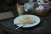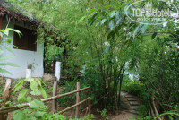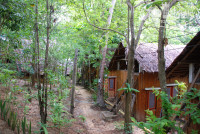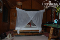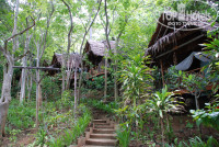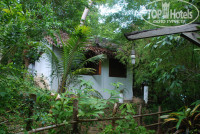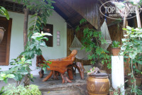 Дикая природа, звуки джунглей, цикады, гекконы, ящерицы, комары, петухи, гуси и павлин и это еще не весь список живности, с которой можно встретиться на территории этого отеля. Номер бронировали Стандарт, если это был он (а не выше категорией), то очень неплохо: большая терраса с гамаком и набором добротной деревянной мебели, при входе на террасу бочонок с водой и ковшик из кокоса. Домик не маленький, высокий потолок с вентилятором, огромная бамбуковая кровать с москитной сеткой, белоснежное постельное, кроме простых подушек еще 4 декоративных, 2 покрывала вместо одеяла (оно вам там не понадобится из-за отсутствия кондиционера), есть напольный вентилятор, он и спасал, от потолочного толка мало, просто гоняет теплый воздух под крышей. Пара столов, больших размеров холодильник почти полностью заполненный, плоский телевизор над входной дверью, вместо шкафа тумбочка и пара-тройка крючков. Просторная душевая комната совмещенная с туалетом. Москитные решетки на окнах. Освещение в ночное время слабое, в комнате царит полумрак. Есть пара мини-окон в душевой - там светло. Не плохой ресторан при отеле, разнообразное меню, вкусные шейки, цены не дороже, чем в центре. Свой мини-пляж каменистый, рядом через джунгли идеальный для купания и снорклинга Long beach. Персонала много, живут прямо на территории отеля, заселение моментальное, депозит 500 бат. Обслуживание в кафе при отеле быстрое, завтраки платные 6 блюд по меню 200 бат. Бесплатный трансфер пирс-отель-пирс на деревянной моторной лодке отеля. Расписание трансферов отель-пирс висит на ресепшене. Территория большая, но везде есть указатели, не заблудиться. До "движухи" минут 15, сначала по дорожке среди корней деревьев, потом начинается асфальтированная. Уборка номера, смена постельного белья и замена полотенец только по запросу. Без запроса оставляют ежедневно перед номером 2 бутылки воды по 0,5 и рулон туалетной бумаги. Нет сейфа.