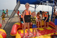 Ну а теперь главное-АНИМАЦИЯ-СУПЕРРРР!!!!! Вообще мы собирались съездить хотя бы на 1 экскурсию, но не получилось, а знаете почему-АНИМАЦИЯ всему виной, каждый день ( мы были 10 дней), что-то новое, ежедневно водное поло, волейбол на пляже, футбол, дар тс, стрельба, на пляже -боча, бильярд на полу, водная аэробика, аэробика на траве, учат танцам, и.т.д .Ну а если вы даже нигде не участвуете, то аниматоры все равно до вас доберутся, то ХАЛЯВА ( не скажу, что это такое. поедете-узнаете) вас достанет ( Мемо И Гио вы в этом образе прекрасны :) ), то они придут к бассейну и устроят настоящий хамам, в общем не заскучаете, а вечером грандиозное-ШОУ!! 1 раз ездили на ночную дискотеку в Аланию, было очень здорово, аниматоры постоянно развлекали, и в автобусе и на дискотеке,никуда от нас не отходили, хотя безумно устали, так как в этот день прошла олимпиада ( потрясающая, всех разделили на 2 команды-красных и белых, которая проходит 1 раз в 2 недели, советую участвовать, никогда не забудете) Детские аниматоры-Нина и Мака, просто волшебницы, детские соревнования каждый день, а потом вечером на шоу им вручают грамоты, наши дети очень по вам скучают, Юльчик каждый день проводит аэробику, ты классная девчонка, с тобой было очень весело, Машка наша когда приехала, плакала, скучала по тебе. Виталик классно танцует брейк-данс-ОООчень красиво!!!! Джорджи учит танцевать латину каждый день, видела девчонки бегают туда с удовольствием, но мы пообщались мало, так как он капитан белых, а вот мы были-КРАСНЫЕ ( чем очень гордимся), но может в следующий раз пообщаемся? Гио, когда ты танцуешь,как там говорят, сердце куда-то там спускается, и такая гордость появляется, что мы тоже красные!!! Бачо проводит водную гимнастику, и знаете, какие мышцы качаются лучше всех? -мышцы живота-от ХОХОТА!!! Наш капитан-Ромео, просто профессионал своего дела, один вечер внезапно пошел сильнейший дождь с ураганом, пришлось аниматорам полностью поменять сценарий, Ромео-ты был великолепен. И наконец баскетболист Мемо,Мемо- он может завести и рассмешить, наверное все население Китая, потому что знает как, на дар тс и на боче вы точно не заскучаете, даже будете наказаны, если не попадете в цель ( не скажу как, но точно обхохочетесь), ах чуть не забыла-Мемо ты,конечно, СЕКСИ!!! И все это действо было бы не возможно без ди джей Мурата!!! Ребята вы-классные!!! Если останетесь в этом отеле обязательно вернемся, хотя, как уже многие писали, никогда не возвращались в один и тот же отель.