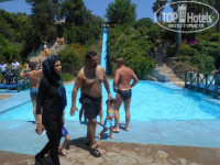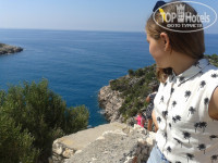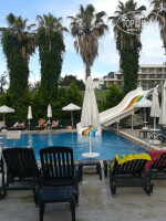 Про питание уже много писали, изысков не ждите, но всё вкусно, не остро(специи и приправы стоят на столах и рядом с лотками со столовыми приборами),всегда можно выбрать что-то для малышей и диетчиков. Фрукты вкусные, но яблоки мойте. Многие несут тарелки с едой в номера, персонал на это внимание не обращает. Бублики в кунжуте-ЧУДО! Ням-ням. Бассейн не большой, но и не маленький, плескается ребятня, но и взрослым вполне можно поплавать.. Горку включают по времени. Свободный лежак около бассейна всегда находили. Пляж близко, море очень красивое, тёплое, чистое. Пляж-песок+галька, убирает приветливый турок в оранжевом жилете , каждый день в 7.00, иногда разравнивает песок какой-то шваброй. Заход тяжеловат без спец обуви (купила матерчатые тапочки на силиконовой подошве за 8$ и know the problems, кстати , в таких тапочках удобно лазать по горам (если пойдёте на дикий пляж)).. Перед нашим отъездом сделали дорожку из мешков с песком- вообще стало очень удобно... Между пляжем и дорогой наводят красоту-строят фонтаны (или ремонтируют?), через них мостики, красиво получается. Через каждые 100 метров туалеты , души и раздевалки. зонтиков сейчас на пляже нет, вместо них матерчатые тенты (очень удобно), лежаки есть всегда, кто придёт пораньше тому бонус- не сломанный лежак.))))))))) Природа вокруг -Чудо чУдное!!! Горы - сказка!!! Воздух- не надышишься!!! Через день ходили на дикий пляж : выходишь из отеля ,поворачиваешь налево и идёшь прямо пока не упрёшься в гору (не доходя до больших каменных ворот рынка ,будут по левой стороне, есть частный дом, он просто утопает весь в цветущих кустах олеандров и роз, как домик доброй волшебницы из сказки, так вот там во дворе можно увидеть ОЧЕНЬ ТОЛСТОГО!!!!!! просто ОГРОМНОГО !!!!! котяру с колокольчиком на шее. Хорош зараза! Мы после ужина каждый день как в зоопарк ходили на него посмотреть.,да и ужин заодно растрясти). Как упёрся носом в гору -поворачивай направо и топай до тоннеля прям по асфальтированной дороге, машины там не ездят, только велосипедисты и мопеды на аккумуляторах (аренда 8$ в час), как пройдёшь через тоннель сразу вправо вниз по каменистой обрывистой тропке и там будет красота с песочным входом в чистейшее море. Анимация в отеле :: Дети были в восторге!!! их собиралось 30-40 человек, и ещё с родителями сидели за столиками.... Взрослая анимация повторялась каждую неделю.... Некоторым нравилась, некоторым нет... Мы иногда смотрели, иногда гуляли по посёлку, болтали с продавцами (сначала они нам показались надоедливыми, приставучими, а оказалось совсем наоборот очень вежливые и гостеприимные люди, интересно было узнать о их культуре, обычаях, религии) . Экскурсии покупали в MAXWELL tur у Казима( от отеля налево первое агенство ), всё хорошо, надёжно, без обмана. Демре-Мира-Кекова 25$ c человека( обед швед.стол) напитки с собой (особенно понравилась поездка на яхте и купание в эгейском море), и Акваленд в Анталии (обед- фастфуд и напитки включены) 30$с человека. Горки средние(видали и покруче) , но очень красиво вокруг- на горку поднимаешься как по джунглям гуляешь. Всё очень понравилось .