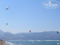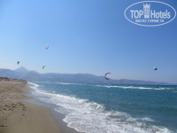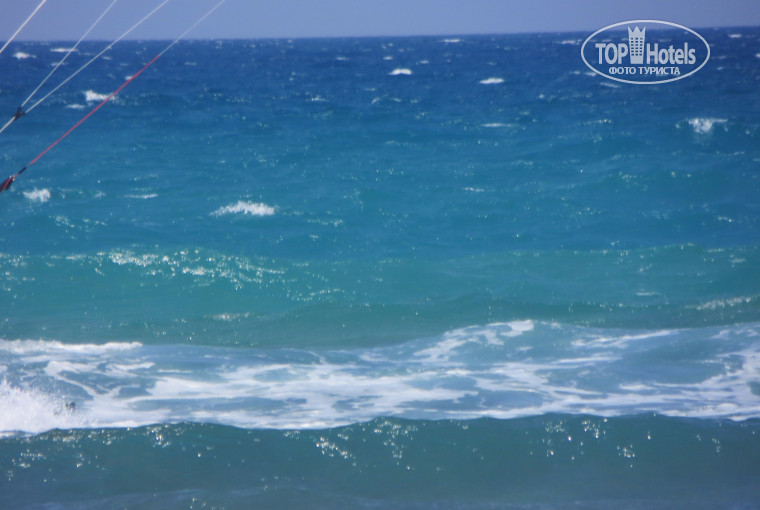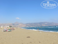 Сам пляж большой, вдоль него расположены другие отели. Тот кусок пляжа, что перед отелем, довольно аккуратный, безлюдный, поскольку отдыхали там в основном туристы из Tsagarakis, мы видели даже местных. Удобный заход в море. Поплавать у бережка (плавать не умею) получилось только в первые дни, поскольку потом море было неспокойно (вообще, пока ездили по острову, покупались в бухточках, вот там море – тишь да гладь).