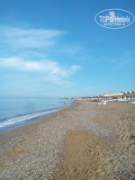 До пляжа идти минут 10, нас это совсем не напрягало, также ходит микроавтобус. На пляже открытое кафе, там же можно и пообедать. Пляж ухоженный, чистый, смесь гальки с песком; лежаков хватает всем, можно свободно гулять по побережью в обе стороны. В отеле можно бесплатно взять большие пляжные полотенца.