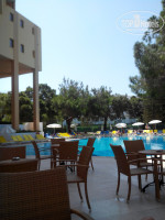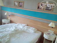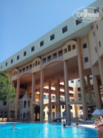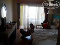 Персонал очень дружелюбный, отношение ко всем одинаковое. Много немцев, русских тоже хватает. Среди отдыхающих много семей с детьми. Территория аккуратная и ухоженная. Нам достался номер на третьем этаже с видом на бассейн и мини бар, никакого дискомфорта не испытывали. Сама комната не очень большая, но есть где развернуться, всё работало. Бесплатный Wi-Fi ловил на всей территории отеля, и даже до нашего третьего этажа доходил хороший сигнал. Архитектура у здания отеля очень интересная.