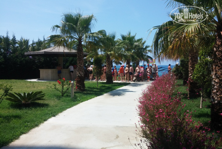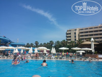 Горки, бассейны: у меня иногда складывалось впечатление, что дети приехали откуда-то из глубокой деревушки, которые никогда не видели водные горки. Они лазили по горам без включеной воды, прыгали с них в бассейн, персонал на это вообще никак не реагировал. Так же в этом бассейне проходила водная гимнастика и водное поло, причем одновременно с включенными горками с которых катались дети, очень странное и непонятное решение. К вечеру вода принимала белый оттенок.. Лежаки нужно занимать заранее, так как к 10 найти свободный просто не реально. Лежаки не моют, утром, которые находятся под деревьями все в птичьих какашках. Для нас еще минусом было то, что около лежаков нет мусорок. Вообще на территории отеля с мусорками большая проблема, их просто практически нет.