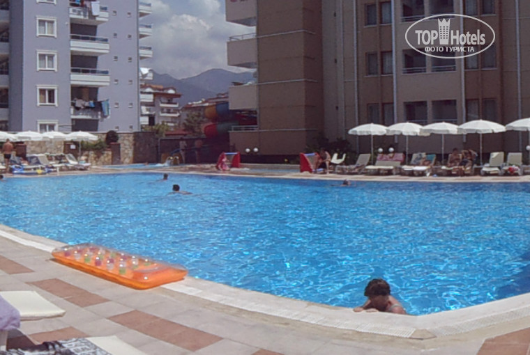 Добираться до отеля пришлось часа три. По километражу где-то 150 км и основная проблема, что надо развозить все отели алании по дороге. Это минус. Заселили менее чем за 5 минут. Номер с кондиционером, работал исправно. На балконе стояла сама установка кондера, что позволяло за полчаса работы высушить там любую вещь. Уборка нормальая, как везде. Ни хуже и не лучше. Наливают шампунь, кладут мыло. Фен мощный. Есть канлоы на русском- орт, россия 24 и музикбокс. Лифты отстой, прошлый век, но рабочие. Еда суперская, был арбуз, черешня, абрикосы, апельсины и яблоки. Готовят вкусно и разнообразно. Мне понравилось даже лучше чем в пятерках. Аниматоры -отдельный рассказ. Им 5+++++. Волейбол 2 раза в день по 2-3 часа, водное поло, дартс. Детишкам минидиско и море позитивных эмоций. Музыка на дискотеке и возле бассейна и зарубежная и русская. Кормят целый день- затврак, перекус, обед, перекус, ужин и т.д. вход с море так себе. Есть переход подземный. В целом все понравилось. Хозяин отеля или его менеджер целыми днями в отеле. Соответственно, все поливается и сияет чистотой. А дураков туристов, способных испортить отдых, и в 3 и в 5 хватает в равной степени, отель ни при чем.развлекают вечерами акробатическими танцами, файершоу, фигурками из шариков и много чем еще до центра алании 15 минут на автобусе, до аланиума пару остановок, до мигроса пару минут хода.