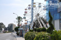 РАСПОЛОЖЕНИЕ. Вполне удобное, в шаговой доступности море - не более 3 минут (маленькая бухточка, где всегда можно было найти место как на лежаках, так и на песке) – идти на ориентир Макдональдса прямо через сквер, что напротив нашего рецепшина, повернуть на лево, затем вдоль забора городской площадки, где качели, выйти к остановке, что рядом с лунопарком, перейти дорогу по светофору – ориентир белое здание кафе-клуба и тут у клуба и есть пляж с замечательным песчаным входом, в море установлен батут – горка для детей, до глубины еще нужно постараться дойти! На пляже есть детская площадка, мойка для ног, душ – платный. До пляжа в оливковой роще минут 20-30 пешком или можно проехать на автобусе №30, но тогда мы проезжали примерно остановок шесть до завода соков (небольшое яркое здание) – на этом пляже есть раздевалки и мойки для ног, также есть участки с лежаками и зонтами и без них, где отдыхают на своих подстилках. Туалеты в основном находятся в начале пляжа, там стоят столбики вдоль аллеи, так вот последний туалет в районе 6-го, а участок где самый удачный вход в море 10-11. Душ на пляже платный от 20 до 50 центов. В 10 минутах ходьбы от отеля магазин МЕТРО, но цены в нем порой выше, чем в других магазинчиках. До старого порта (читай до старого города) порядка 7 км, любители ходьбы одолевают за час-полтора, но лучше воспользоваться автобусом (1,5€ одна поездка, 5€ дневной проездной,15 € на неделю). Самый популярный маршрут №30, остальные попадаются крайне редко!