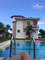 Отдыхали в этом году в июне неделю на вилле дом 4, 2 семьи 4 взрослых и 2 ребенка по 2 годика. В целом все понравилось. Сама я в Турции впервые. Но впечатления остались хорошие. О самом отеле тоже положительно,персонал очень добрый и заботливый. Чем вилла хороша тем что,можно уединиться от всех туристов,побыть на едине,потому как дом и своя территория с бассейном,где можно посидеть в тишине,или наоборот поставить свою музыку. Чем хорошо для детей своя территория,свой бассейн все свое,природа ограждено,дети некуда не убегут,разве что надо смотреть чтоб в бассейн не нырнули! Для молодежи хорошо тем что можно погудеть компанией в доме,места много и даже для танцев,можно в пьяном угаре сразу прыгать в бассейн очень клево там! Минус был что убирались там только в обедненное время.когда дети спали,и поэтому нам часто приходилось отказываться от уборки,с туалета был запах не приятный,но не сильно, так же ждля детей всего 1 площадка игровая не большаяи там 1 горка и 2 качельки и все этого мало вечная очередь покататься и слезы, чтобы поесть приходилось постоянно добираться до отеля,пешком мин 7 или на трансфер по предварительному заказу за 4 мин доезжаете. При вьезде дают телефон с симкой,когда надо звоните водителю,он приезжает забирает вас довозит бесплатно до отеля и обратно,время уходит на догору и это изматывает когда с детьми,еще обед с 12.30 до 15.00 и если придти на обед к часм 14 то уже мало что остается поесть,а если придти в разгар то иногда нет места куда сесть поесть за стол,а все остально только плюсы,белье пастель чистое,Жвсе есть телек,сушилка,даска для глажки,утюг,посуда все все....только не костюль если хотите сами готовить на вилле и нет стиральной машинки и нет тазиков для стирки опять же,зато ест большой холодильник и посуд.машина))) в одном доме 2 входа,первый этаж гостинная большая,2 дивана,2 кресла,стол стулья телек большой кухня и туалет с душевой,второй этаж 3 комнаты 2 с 2х спальн.кроватями и по 1 маленькой кровать манеж и 1 комната не большая с 1 местной кроватью,шкафов много. всего 3 санузла! Еда вкусная,ассортимен не маленький,не разу не отравились,посуда чистая,официанты норм! всего в отеле 3 бассейна 1 большой,2 большой игровой,3 для малышей. Анимация тоже норм!!! В холольнике есть всегда что выпить,фрукты и печенья!!!если сами не приносят можно спросить на ресепшене они дают все!!! просто они же не знают кто там заселился))) Море рядом с отелем,галечный пляж,деткам не очень но мы норм обошлись без песка!!!
