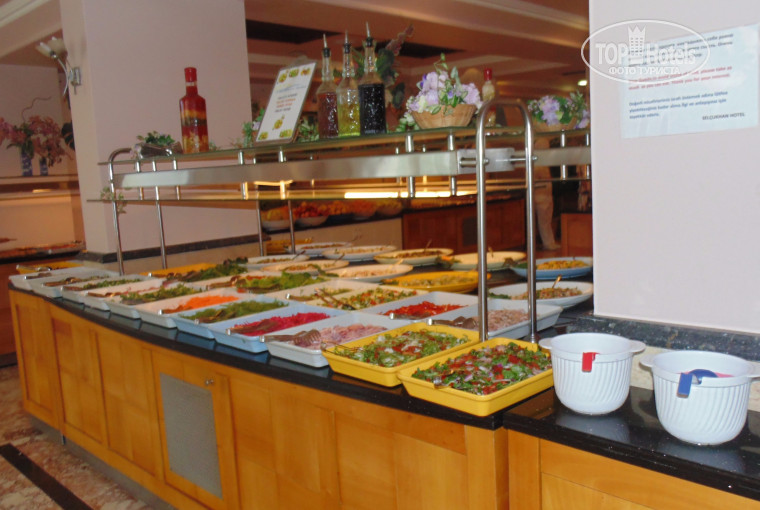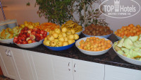 Питание просто супер: различные салаты и нарезки из овощей, соленые огурчики были, баранина, индейка, телятина, ягненок, цыпленок, несколько видов рыбы. Все очень вкусно. Утром на завтрак всегда молочная каша, творог, омлет, различное разнообразие сухого завтрака, различные джемы, очень вкусные блинчики пекут. На обед и ужин всегда 2 вида супов, обязательно рыба, есть картофельное пюре, картофель печеный, макароны, рис, овощи на пару и многое другое. Фруктов огромное количество : киви, арбузы, дыни, апельсины, персики, нектарины, абрикосы, сливы, бананы, грейпфрукт, яблоки, груши, клубника, черешня. Сладкий стол просто шикарный, от такого разнообразия сладостей, глаза разбегаются. На территории отеля есть еще снэк-бар, который работал с 11 до 16 каждый день. Там можно было заказать пиццу(несколько видов), куриный шашлык, гамбургеры, чизбургеры. А еще с 11 до 16.30 каждый день на территории бара на пляже женщина жарила лепешки с различными начинками. Каждый день давали мороженное.