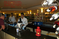 Из предыдущих отзывов я для себя отметила , что ходить надо в бар на втором этаже. Там практически нет очередей , ребята приветливые , общительные , пытаются всё время заигрывать с нами и нашими детьми. В баре всё бесплатно , что касается местных спиртных напитков.