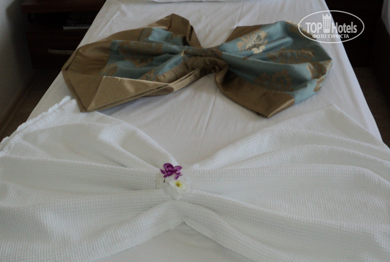 Всем добрый день. Отдыхали с сыном в отеле с 07.06 по 17.06. 2015 год. Приехали в отель около 10.00, заполнили документы и нас сразу заселили в номер. Номер уютный, вид из номера нас не интересовал, мы же не в номере сидеть приехали, самое главное, что все работало отлично и вопросов у нас не возникало. Территория небольшая , но уютная и чистая, два обычных бассейна и один с горками. Отель находится на третьей береговой линии, на пляж можно добраться на автобусе или пешком. Автобус ходит через каждые 30 минут, дорога пешком занимает максимум 20 минут. На пляже лежаков хватает всем. Пляж небольшой и чистый, рядом пляжи соседних отелей. Питание в отеле разнообразное, нам всего хватало, обслуживание в ресторане и барах отличное. Мне очень понравился спа-центр при отеле, хамам бесплатный. Я взяла курс массажа осталась очень довольна, качество услуг стоило тех денег которые я заплатила. Анимация в отеле хорошая, каждый вечер есть детские дискотеки, после них каждый вечер новая шоу программа для взрослых, после нее можно сходить на ночную дискотеку. Аниматоры два брата и пара девочек, молодцы ребята. Заказывали услуги фотографа, получили очень красивые фотографии. В общем отдых нам понравился и оценку отелю мы ставим 5.