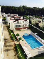 Бассейны чистили каждый вечер и брали пробу воды, это плюс! Минусом была ужасно скользкая плитка возле бассейна, дети да и взрослые падали! Так же всех напрягали постоянно падающие и летающие зонты! Мужчины каждый час доливали воду в основание, но вода оттуда вытекала и зонты опять падали. При сильном ветре однажды, зонт упал возле мальчишки лет 10, кто это видел - поседели наверно, благо не задел его!