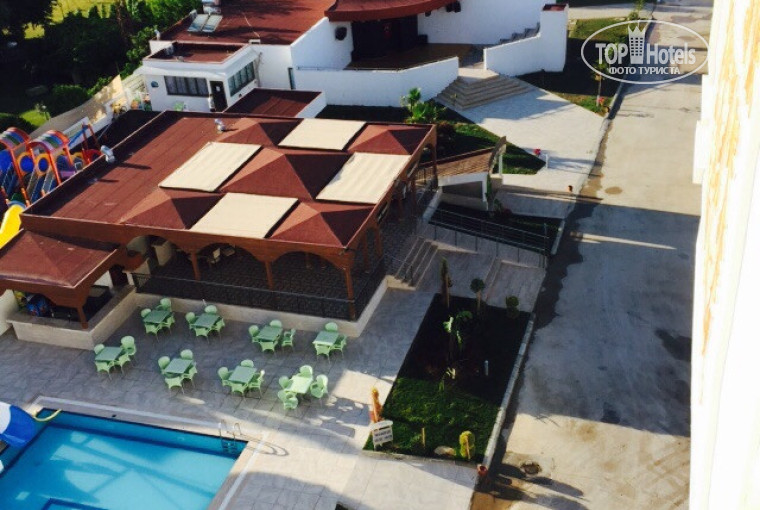 Территория отеля: да ее просто нет! С права от дорожки большой бассейн, основное здание, стоянка и теннисный корт, слева 3 здания бунгального типа, бассейн, газон примерно 10/10, бассейн с горками, ресторан Аля карт и амфи театр! Все стоит впритык друг к другу, на этом территория и кончилась! Дети (а их в отеле очень много, отель же семейный) бегали по маленькому клочку газона, по дорожке метра 5 шириной (по которой и автобусы привозящие туристов ездили) и по корту, все! Детская площадка это вообще отдельная тема, на фото видно ее, находится за рестораном Аля карт, с другой стороны забор, величиной метра 4 на 10. Там дети как мячики в сухом бассейне, попробуй раскопать своего называется. На фото у Пегас туристик, площадка находится на большом открытом пространстве, там где сейчас построили ресторан и бассейн с горками. Поэтому глядя на те фотографии было ощущение что на территории очень просторно!