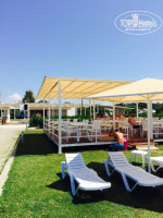 Ресторан небольшой, мало места между стульями разных столов, сидели спина к спине, детские стульчики вообще некуда поставить. Кстати о стульчиках, их 5или6, протирают только столик от стула, а сами стулья ужасно грязные (ощущение что их ни разу не мыли), сажая ребенка сначала выгребали из стула крошки, еду, супы, при этом стул стоял запечатан в пленку, типо его вымыли! Питание в ресторане довольно скудное, салаты красиво выложенные из вчерашних недоетых блюд (судя по виду и запаху очень не свежие), гарниров и овощей достаточно, 2 вида супа, а вот с мясом беда. За 14 дней раза 2 был гриль наподобие шаурмы, пару раз курица на гриле и раза 3 рыба, котлеты мясные (постоянно пересоленые) и если очень повезет можно было уловить пару кусочков мяса из жаркого. Туристы конечно поражали своей наглостью, стоя по 5мин возле жаркого и выбирая оттуда мяско и наваливая себе по пол тарелки- прям выглядели как жуки навозные ковыряющийся сами понимаете где! Фрукты: арбузы (не сладкие), дыни (зеленые), нарезанные кусочками апельсины, нектарины и яблоки. Десерты конечно очень вкусные, это единственно к чему из еды нет притензий. Официанты в ресторане старались убирать тарелки как только ты докушал блюдо, но вот освободившиеся столы убирать не торопились, часто сама смахивала салфеткой крошки, переворачивала подобие скатерти и приносила приборы. Кстати очень много мух! Мороженное вкусное, дают с 15.00 до 16.00 одно в руки.