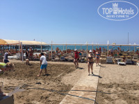Пляж: клочёк песка с шезлонгами натыканными вплотную друг к другу, смотрите фото! Песок за 2 недели ниразу никто не чистил, а в нем простите, стаканчики, трубочки, бычки, веточки, колючки, г-но собачье и наверно лошадиное или верблюжье! Просеевали только там где в волейбол играют. Плюсом был газон на котором тоже были зонты и шезлонги, только не так тесно! Дорога до пляжа ужасная, пешеходка идет прям вдоль дороги и вы идете и дышите пылью! Если бы руководство отеля смогли перенести пешеходку на 2 метра за кустарники, вообще было бы здорово прогуляться30-40 минут! И кстати до пляжа вовсе не 1300метров ))), точнее на прямую может так и есть( но дороги там нет), а вот по дороге выходит 2500 (посмотрела на спидометре водителя когда ездила), пешком муж с сыном в коляске, быстрым шагом без остановок доходил не быстрей чем за 25-30мин, быстрее только бегом )))) так что кто доходил за 15 мин, у них наверно скороходы )))