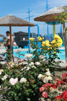 Пляж. До моря близко, пляж и галька, и камни, и песок. Пока мы были, лежаки были старые и бесплатно, в последний день поменяли лежаки, сделали деревянные дорожки до моря и сделали пляж платным, 7 евро два лежака и зонт!! Есть классный бар, но он платный, но очень уютный ;). Вода сначала была прохладная, потом прогрелась. Дно каменистое, без тапочек не покупаешься. Есть глубокие места рядом с берегом, аккуратнее!! В основном народ приходит со своими зонтиками и даже палатками. Море чистейшее!!!! Пару раз были небольшие волны, во второй половине дня ветрено.