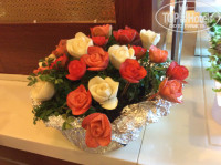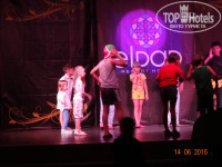 А еще на День России был праздник для Россиян. Флаги, синии, белые,красные шарики, вкусный торт в виде флага. Аниматоры гимн включили.