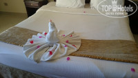 Поселили в четвертый корпус на второй этаж. Мебель старенькая, потрепанная с "душком". С нами жили в номере постоянные жильцы - огромные муравьи. Каждый день по несколько крупных штук приходилось убивать. Совет - если убиваете большого муравья, то сразу его смывайте или выкидывайте, а то потом прибегает стайка более мелких муравьев (штук по 30) и пытаются вынести трупик старшего собрата куда то. Уборщика попросили о дезинфекции номера от насекомых, на что он дал баллончик от муравьев и на следующий день этот баллончик забрал. Уборщик работал хорошо: каждый день менял полотенца и через три дня менял постельное белье, зверюшек крутил и цветочками посыпал. Вид из номера просто шикарный! он перебил все недостатки самого номера.