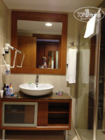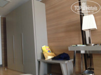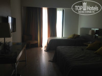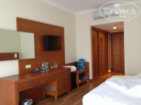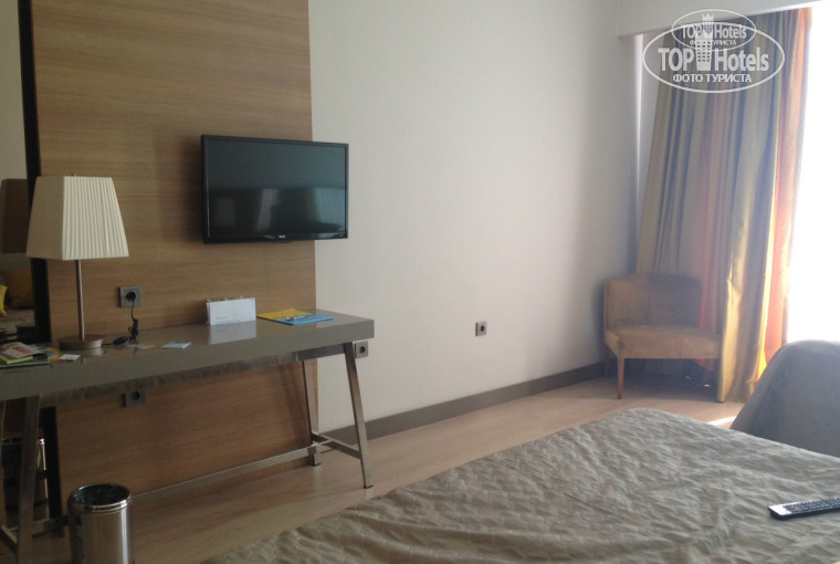 Как и заявлено, не позднее 14 часов заселили в номер нового корпуса. На тот момент только построившегося. Сам корпус находится далековато от всей инфраструктуры. Помещение в серых тонах, напоминает офис. Номер очень просторный, в нём две кровати, одна спальная и двуспальная на которой и втроём комфортно можно разместиться. Кресло, шкаф, ТВ и тумбочка. Всё современно. Шторы тёмные и плотные, для нас это был плюс, т.к. дневной сон ребёнка длиться 3 часа. Если бы не мечеть, расположенная недалеко от отеля, ничего не мешало бы ребёнку отдыхать.