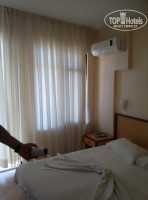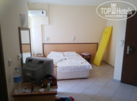 Отдыхали в середине июня. Приехали в районе 13 часов. Пока на ресепшн оформляли документы, нас отправили на обед. Пообедав, заселили в номер. Все необходимое есть: кондиционер, ТВ с 4 или 5 каналами, среди которых ТНТ :) фен. Из мебели две тумбочки, кровать, стол, зеркало и небольшой шкафчик. Заселили нас в блок В, с видом на блок А, магистраль и море. Красиво.