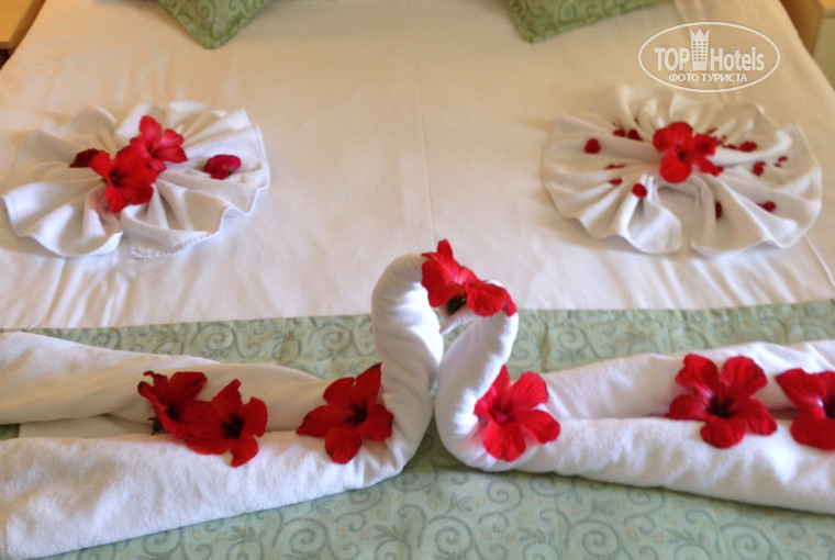 Персонал отзывчивый, всегда можно найти того, кто говорит на русском языке. В барах и в ресторанах хорошо обслуживают, внимательные. В номере чисто и красиво, у нас был семейный номер, выходил на спокойный бассейн. Убирали каждый день, за 10 дней сделали 2 красивые уборки с цветами и лебедями из полотенец. Сразу после заселения нам принесли бутылку вина и фрукты в номер бесплатно.