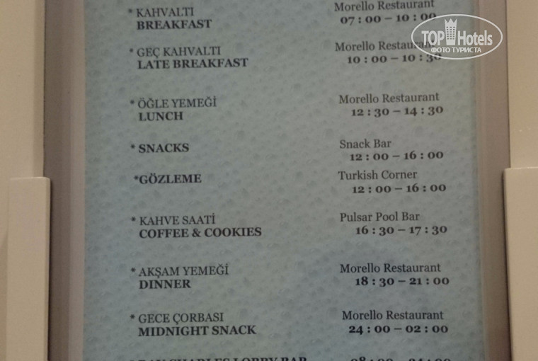 Лобби бар работал с 8,00 утра до 00,00 , наливали всегда все, что просили. Утром всегда брала себе чай с лимоном, кофе. После обеда иногда брали алкогольные коктейли с собой на пляж, если на вынос то наливают в красивые картонные стаканчики, если в баре, то стеклянные бокалы. Коктейли разные бармены делают по разному, один раз заказала, вкусный, понравился, на следующий день заказала такой же, а он по вкусу совершенно отличается, еще и цвета другого. Поэтому с коктейлями не экспериментировали. Муж часто вечером брал раки, говорит хорошее. Я пила вино, понравилось белое. Один раз брали местный виски, не очень. Соки в лобби баре из пакетов, хорошие, так же без проблем можно что то взять и пойти к себе в номер. В лобби баре работал бесплатный wi-fi, когда людей мало, то была возможность позвонить в vibere или skype, ну а вечером скорости не хватало.