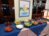 Завтраки очень хорошие, даже не ожидала от двушки. Вареные яйца, глазунья (к концу отдыха, когда народа прибавилось, появился еще и омлет), вкусные сосиски отварные, печеные помидоры, гренки, помидоры-огурцы, 3 вида оливок, йогурт, мед, джем, консервированные фрукты, масло, по 1 вида сыра и колбасы, хлопья типа "Геркулеса", чай в пакетиках, молоко, кофе из титана, сок-юпи (пить можно, пробовала и хуже), хлеб свежий и вкусный 1 вида.