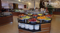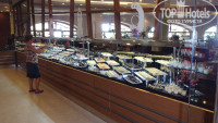 В основном ресторане, качество еды достаточно хорошее, постоянный набор фруктов и ягод, большой выбор десертов, но с мясным и рыбным ассортиментом явно выраженная проблема, всегда ограниченно и с большим скоплением народа у стоек с данным видом продуктов. После массового заезда отдыхающих в ресторан стояли очереди, а за освободившимися столами велась дикая охота, люди просто пытались сесть хотя бы за неубранные столы и ждали когда официанты уберут, а ждать приходилось долго, мы один раз даже своего официанта отправили убрать соседний стол, т.к. там люди просто 20 мин просидели с грязной посудой. Надо признать, что в данной ситуации наверно виноваты сами, мы давали по 2 доллара официанту и он все вовремя приносил и уносил, а те кто не давал, сидели ждали... Кофе растворимый (заварной только в той самой кофейне и после 16.00), свежевыжатых соков нет, мороженое за деньги...