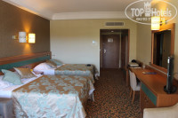 Номер очень хороший, чистый и просторный, вид с балкона на море и территорию. В номере: 2 двуспальные кровати, диван, кресло, телевизор, шкаф, комод и т.д. Уборка в номере ежедневно, за время проживания белье меняли 3 раза, полотенца меняли каждый день! При заезде в ванной комнате: гели для душа, шампуни, кондиционеры для волос, лосьоны для тела, ватные диски, ватные палочки, шапочки для душа, мыло -все пополнялось по мере необходимости!