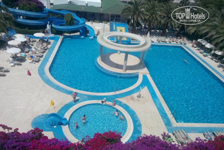 Есть два бассейина, с горками и без,но глубокий. Вокруг грязно,видно что только водичкой промывают,без усиления тряпки и т.д. Лежаков не хватала,так как народ бросает полотенце и дрыхнет в номере,и под вечер приходит..это очень раздражает...ни себе ни людям называется.