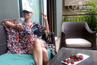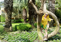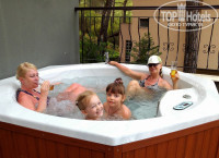 В начале вечера 4-го дня удача, в отношении номеров, улыбнулась нам ещё раз ( хотя нам нравилось и там где мы жили, и мы не просили поменять нам номера) - нам предложили переселиться на ВИЛЛУ. Вилла просто супер - необыкновенный двухэтажный комфортабельный домик, с хорошой террасой, в окружении соснового бора с одной стороны, шикарных апельсиновых деревьев и цветов с другой, и собственого джакузи на втором этаже (что было прекрасно для детей, можно было поплескаться в тёпленькой водичке, пока на улице пару дней была погода не очень солнечной и тёплой), с двумя огромными балконами на обоих этажах. Расписывать прелести ВИЛЛЫ далее не буду, посмотрите на фотографиях в разделе «номера» и на моих фотках.