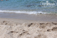 Отель находится рядом с пляжем, мы ходили на дикий в правую сторону. Лежаков там нет и слава богу, тк это не привлекает лишний народ, да и на песке приятнее:) При заходе в море есть полоса с камнями, но это особо не мешает, тк дальше везде песочек.