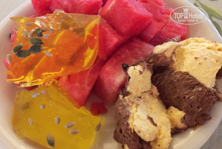 Кормят в отеле тоже очень хорошо: да, завтраки немного скудные, но голодными мы себя никогда не чувствовали, а вот обеды и ужины были на повал о чём красноречиво показали цифры на весах, когда мы вернулись домой...)
