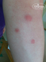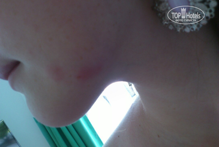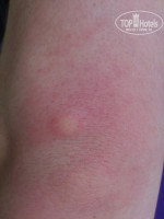 Заселились мы 23-го июня в корпус "Дельфин", номер 2051. По рекомендации туроператора, ранее отдыхавшего в этом отеле. На следующее же утро на руке обнаружила укус, отогнала плохие мысли, погрешила на комара, хотя ни одного в номере замечено не было. Далее, в течение следующих 5-ти дней на наших телах стали появляться укусы в различных местах, в том числе, и на лицах. Чесалось и опухало жутко, головная и боль, аллергическая реакция, в общем, все прелести. Фото всей красоты прилагаю.