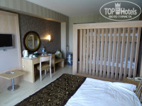 НОМЕР: сам номер нам дали, как мы его прозвали эконом-фэмели, хотя платили за стандарт-это номер с двухъярусной кроватью и 1 двухспальной, между которыми стоит деревянная перегородка-детскую кроватку мы поставили между двухъярусной и перегородкой и все были счастливы, потому как 2-ой ярус мы использовали для хранения детских вещей, потому как в шкафу нет полок. "Как так нет полок?"-спросите Вы-"а вот так!"- т.е. есть одна большая над вешалками и одна над минибаром(он стоит в шкафу, а на нём сейф), поэтому как располагать вещи не понятно абсолютно-ладно, это мелочи. Минибар бесплатный, но его пополнение зависит толи от настроения того, кто пополняет, толи от фаз луны-для нас это так и осталось загадкой. Воду в 1,5л. бутылки кладут всегда, если висит табличка «не беспокоить»-ставят под дверь, 2 бутылки по 0,5 через раз, содовая-ещё реже, сок 2 пачки по 0,2 (персиковые кстати вполне сносные)-тоже не всегда, чай(разный-чёрный,зелёный,с ромашкой и т.д.),кофе (якобс в пакетиках) в принципе пополняли(есть ещё сливки и сахар-мы не пользовались). В Ванной комнате жидкое мыло и в ванной 2в1 шампунь+гель для душа. Есть в комнате маленький ТВ по которому можно посмотреть Россию 24 и украинский музыкальный канал-всё. На балконе 2 палочки для сушки белья(не парились,тк всегда берём с собой верёвку). Уборка в номере отвратительная, чаевые просто не за что было оставлять-заселили в грязный номер(у ребёнка были грязные ноги через 2 минуты+под двухъярусной кроватью, когда доставала закатившуюся туда машинку, я нашла тапок от старых хозяев… да, кстати тапочки в номере есть После жалобы гиду и на ресепшен номер прибрали уже и не вспомню-толи на следущий день, толи через день. Смена балья очень редко, чуть ли не 1 раз в 5-6 дней, приходилось просить у уборщицы, чтобы поменяла(т.к. всё же пляж песчаный, а в отеле нет покрывал, закрывающих целиком всю кровать-ребенок быстро тащит всё на постель). Wi-fi в номере был, ловил ксати лучше, чем в лобби.