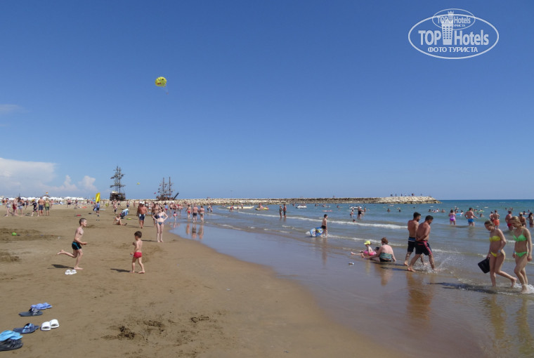 ПЛЯЖ: Вот тут возникает достаточно спорный вопрос, тк по информации у многих туроператоров в частности у нашего Пегаса, отель стоит на 2ой береговой линии в 250м от моря. Перед отелем стоят ещё два отеля и расстояние по google earth не мение 500м-это если напрямую. Вообщем-то дорога занимает как и писали ранее 5-7 минут, особенно если идти через бассейн релакс-там в дневное время открыта калитка-получается минуете гору до ресепшн. Сам пляж хороший, не сказать, что прям очень читсый, в песке могут попадаться бычки, но в полнее приличный. Заход в море свойственный Чолаклы-Эвренсеки-удобный для деток, на берегу можно строить замки. Море стало тёплым после первой недели июня, до этого купаться маленьким деткам было не комфортно, да и взрослому-так больше зайти искупнуться.