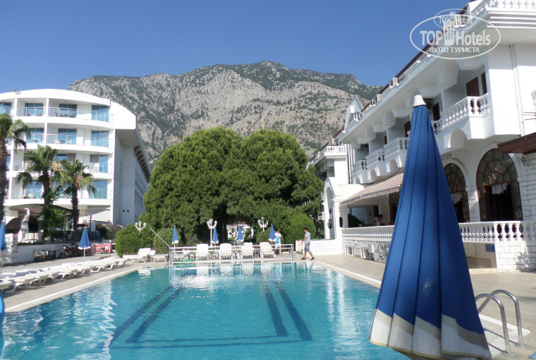 отель конечно старенький,,,,но персонал как то старается это **загладить***--даже пообещали сделать кап-ремонт к следующему сезону,,,,,,мы отдохнули ----накупались в море (мы приехали в море и позагорать)в столовой всё нормально--выбор еды ,,,,,ну можно выбрать и покушать,,,,у нас в номере сломался кран-сделали очень быстро,,,ну,,не супер--отель,,,,но люди работают для нас--стараются,,за небольшие деньги море рядом---питание нормальное---хамства нет--камни при входе в море,,,а приспособились,,,и все плавали ,,,и отель всегда полный----мешает конечно шум и музыка соседних отелей----все высыпались и даже ***привыкали***к шуму за 10 дней-------а горыыыыыы,,,,,,,,,,,,,,,это завораживает----красотааа!!!!!!!!! мы отплывали и любовались!!!!!!!!!!!!пирс на фото конечно соседский туда нас не пускали а наш ***пирс***---это пантон,,,очень неудобный