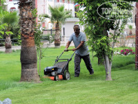 Без преувеличения, достаточно большая, зеленая и ухоженная территория это одно из главных достоинств Novia Lucida Beach. На территории отеля, не возникает ощущения запертости в его периметре. При желании, покинуть территорию можно не только через здание отеля, но и по пешеходной дорожке, пересекающей сад. От проникновения посторонних лиц отель надежно защищает охрана. Ставшей притчей во языцех автомобильной дороги больше нет. Её место занял изумрудный газон, который активно используется для фотосессий. На этом газоне внимательные гости вечером могут заметить ежа. Я видел дважды.