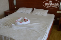 Прибыли в "отель" в 22.30. Радость омрачалась уже во время поездки на автобусе, когда мы все больше и больше отдалялись от города Сиде, в котором должен был находиться наш отель. Приехали мы в поселок Ченжер. На ресепшене на нас надели браслеты и радостно сообщили, что свободных номеров нет, поэтому нам (мне, мужу и 12-летнему сыну) нужно заселиться в один замечательный, просто огромный номер вместе с парой (молодые парень и девушка, которые, наверняка, не планировали жить в общаге на отдыхе). Мы отказались, после часовой перепалки, когда нервы и силы были уже на пределе, нам нашли свободный номер 1428 на 4 этаже за 100 у.е. Т.к. было уже все равно, мы заплатили, и в ужасном настроении заселились в номер. Если бы была возможность, я бы уехала оттуда сразу, но самолет только через 10 дней.