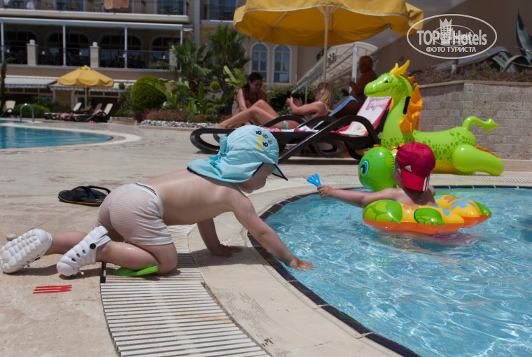 Отдельное большое спасибо хочется сказать анимации. Не давали скучать ни днем, не ночью. Детей можно было отдать в мини клуб, там ими занимались прекрасные детские аниматоры Диана, Света. Они целыми днями то клады искали по берегу, то пиццы лепили....После ужина, детям показывали мультики, затем начиналось зажигательное мини-диско. Даже наш 1,5 годовалый карапуз отплясывал на танцполе. После детской дискотеки начиналась анимация для взрослых, африканское, кенийское шоу, живая музыка и многое другое. Не веселится было невозможно. Для желающих продолжить ночную дискотеку, аниматоры Ибрагим, Паша, Гриша организовывают трансфер до знаменитых клубов Аура, Кристалл в городе Кемер. На пляже также развлекают по полной программе, аквааэробика, зарядка, состязания.