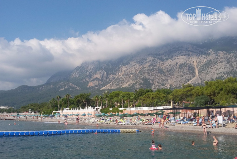 Пляж - через дорогу ( до воды примерно 100 метров от выхода из отеля) , пляж - галечный , в воде - крупная галька , есть пластиковый понтонный пирс , на пляже - банан , таблетка , парашют . Пляж по бокам не огорожен , можно без проблем сходить на пляжи соседних отелей или уйти на неохраняемые территории .
