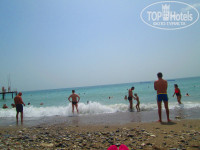 Море и пляж: От отеля до пляжа идти минуты 3 через аллею, перед пляжем клуб Флай, там же и бар пляжный находиться. На пляже песок вперемешку с мелкой галькой, ближе к воде только мелкая галька, в море камни. Но в спец. обуви заходить в море нормально. Не повезло с погодой в конце отдыха, море было 22-23 градуса, иногда после обеда облака затягивали все небо и был дождь. На пляже есть кабинки для переодевания. Свободные лежаки находили всегда.