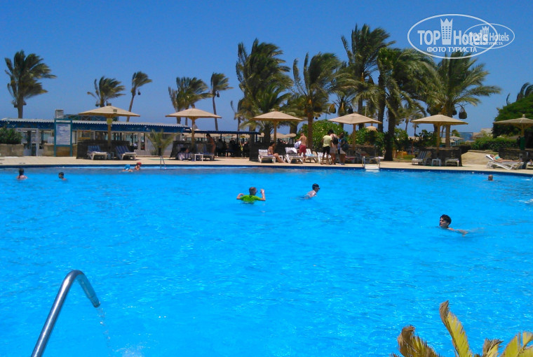 Питание нормальное, без изысков, но голодными не были совсем. Завтраки нормальные: блинчики, омлеты, яичница, фрукты, овощи ( в основном помидоры и огурцы), хлопья..... обеды - суп, мясо, гарниры разные, очень вкусный рис, закуски, пироженки на любой вкус, фрукты (арбузы, апельсины очень вкусные, бананы, виноград, яблоки), ужин был похож чем-то на обед, но больше блюд - два вида супа, больше выбор мясного и закусок, сервировали столы и стелили скатерти. Сыну понравились крабы и рыба в панировке. По напиткам - кофе, чай, газировка, сок (юпи). Из алкогольного - вино красное и белое (средние), пиво бутылочное, вполне освежало. В барах в здании и у бассейнов различные коктели. Имелся фреш-бар, но платный. Вкусный фреш из манго 5$, апельсин 4$, нас еще и арбузом угостили. Мы всем были довольны! А вот а-ля-карты их подкачали, самый вкусный - восточный, остальные совсем не понравились. И вот там отношение к русским отличается. Я не согласна с теми, кто пишет, что нет национального признака. К русским относятся хуже, чем к европейцам. Особенно в почете гости из Германии, т.к. владелец отеля немец. И это несмотря на то, что чаевые дают только русские. Из звездного ресторана мы ушли голодные и не успели на ужин в основной ресторан. Было неприятно. Но в других местах все было хорошо. Надо просто улыбаться людям. И чаевые в 1$ бармену обеспечат вкусные коктели )