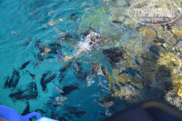 И нельзя не сказать про море. Одно из самых чистых и красивых морей. При выборе между Шармом и Хургадой каждый решает для себя, что более приятно. Хургада - это песочек, все, как везде. Шарм - это понтоны, с которых ныряют сразу на глубину в метров пять. Это весьма посредственные кораллы, но безумно красивая вода с плавающими рыбками всевозможных видов. Без маски в Шарм ехать незачем.