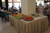 Питание качественное, я бы даже сказала, что частично диетическое. Выбор средненький. Завтрак всегда стандартный. На обед и ужин иногда что-то менялось. 2-3 вида мяса, овощи свежие и на пару, картофель (пюре не бывает), супы, макароны, соусы, сладости, фрукты, мороженое - всего вдоволь, огорчило лишь отсутствие морепродуктов, каждый день была только унылая треска. Покушать морепродукты вы можете за дополнительную плату в рыбном ресторанчике по предварительной записи.