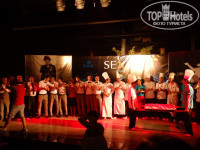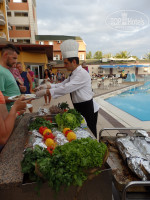 Еда- обычный турецкий набор. Никто не отравился. всем хватало. Прилично сготовлено. Удовлетворительно вполне. Персонал в ресторане шкалят каждый день. Все чистенькие, быстрые. Молодцы. Достойно