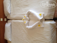 Отдыхали в отеле на майские праздники. Выбор отеля: недорогой, большая территория и еды поменьше, чтобы не привезти лишние кг. Прочитав отзывы мы прекрасно знали куда едем и были настроены хорошо отдохнуть и не придираться к мелочам. Приехали в отель около 22:00 и нас сразу отправили на ужин, после ужина подошли на рецепшен отдали паспорта с 20 $ и получили прекрасный номер в видом на море.
