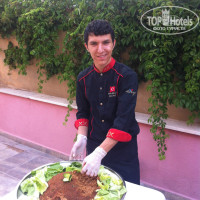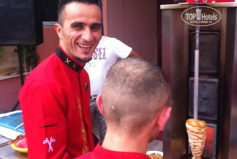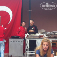 Кормят вкусно! Я не знаю, что за обжоры пишут там ниже в отзывах, что они голодали, - мы всегда были довольны едой, даже когда возвращались с поздней экскурсии в последние минуты ужина. Всегда есть свежие овощи, которые в Турции невероятно вкусные, спелые и с настоящим вкусом, а не "пластмассовые", как в Питере. Есть 2-3 вида свежих салатов - их можно полить каким-нибудь соусом, или просто лимонным соком. Всегда есть фета и оливки разных видов. Есть салаты из тушёных овощей (м-м-м, какие там были баклажаны!) Для особо странных "гурманов" бывает салат с майонезом. Горячие блюда тоже хорошие - всегда обязательно какое-нибудь мясное рагу, чаще с курицей - ну и хорошо! Всегда есть тушёные овощи и другие гарниры. На ужин повара обязательно готовят что-нибудь на огне: котлетки жарят, готовят пасту с овощами, кабачковые оладьи. Супы варят неплохие, на десерт подают замечательные кексики, из фруктов всегда есть дыня и арбуз. Шеф-повар, замечательный Аббас, днём готовит умопомрачительно вкусный арбузный пунш - сколько я ни пыталась выведать у него рецепт, так и не рассказал! :)