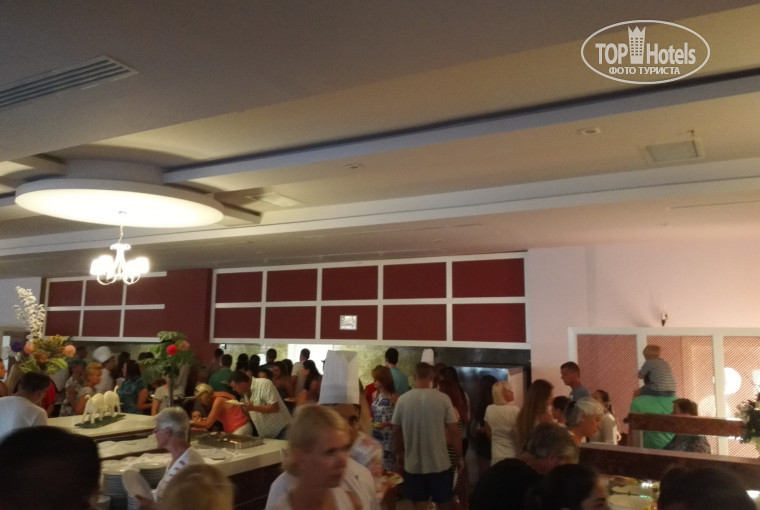4. ЕДА - есть... но еще раз - в отеле 500 номеров - всем сесть невозможно сразу, а во второй заход столики не сервируют!!! еда заканчивается за 9-11 мин. через 10-15 мин обновляют... МЯСО - 99 % курица и рыба... помещение маленькое, давка, очереди по 30 человек за макаронами - жесть - см. фото.