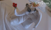 Номер у нас был с двумя кроватями, кондиционером, балконом, маленьким холодильничком. Из окна был вид на горы. Убирали каждый день, полотенца меняли три раза, постельное белье один раз. За уборку оставляли чаевые, нам за это слоников сделали)))