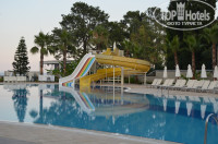 Территория отеля небольшая, зеленая, ухоженная, огромный бассейн с двумя горками, крытый бассейн, детская площадка для малышей, теннисный корт, спа, фитнес-зал, столы для настольного тенниса, игровой зал с автоматами.